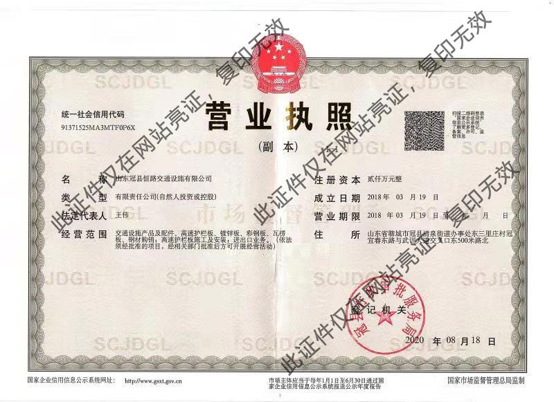 山東冠縣恒路交通設施有限公司位于山東省聊城市冠縣新世紀工業園區,距青蘭高速2公里,地理位置優越,交通便利。公司專業經營高速公路波形梁護欄板、繩索護欄、立柱、等相關配件設施,并提供專業護欄板的安裝與施工。公司始終堅持“以質量求生存、以誠信求發展”的經營理念,公司愿與各界有識之士真誠合作、共同發展!......
